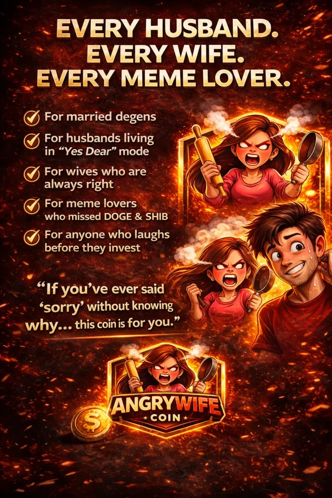 $ANGRYWIFE is a meme-powered community coin where laughter is utility, memes are currency, and the community is the real power. It’s fun, cultural, and totally internet-driven.